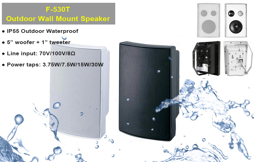 Fashion designed ABS on wall mounted IP55 outdoor waterproof PA loudspeaker with 5" woofer speaker driver and 1" tweeter, build-in 70V/100V transformer, 70V/100V/8Ω line input.