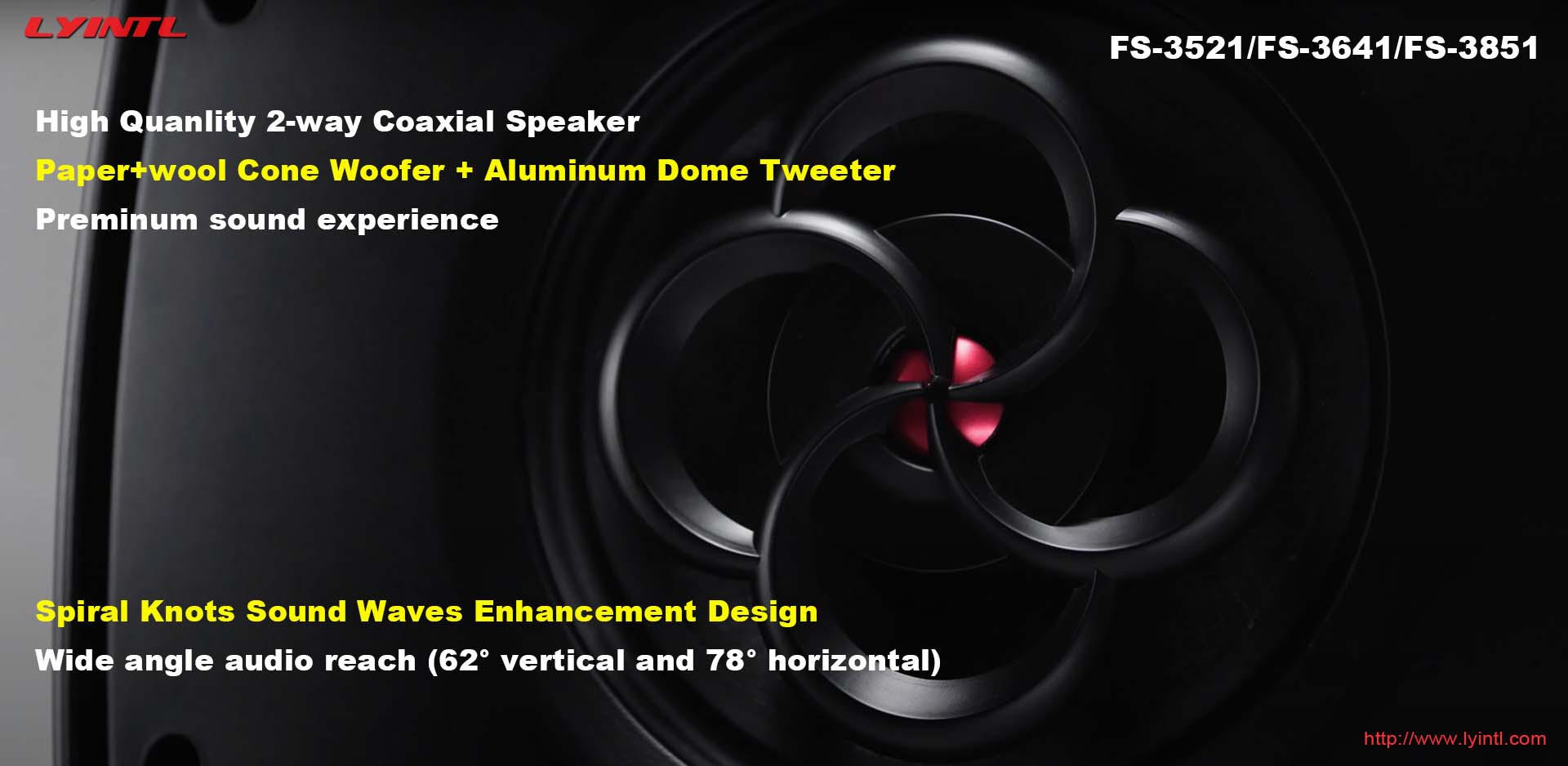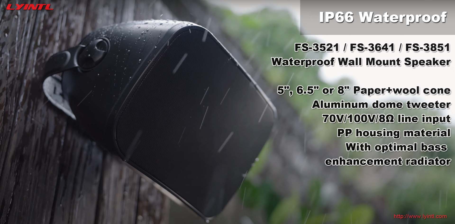 The FS-3521/FS-3641/FS-3851 series outdoor IP66 waterproof wall mount speakers coming PREMINUM 2-way coaxial speaker drivers and exclusive optimal bass enhancement radiator, is a high-quality audio device designed for outdoor use, providing exceptional sound quality and durability in various weather conditions.