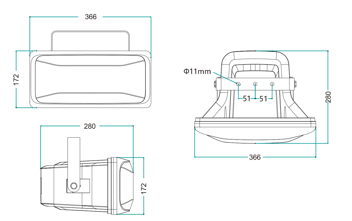 | Mounting hole size | 3*Φ11mm The distance between holes is51mm |