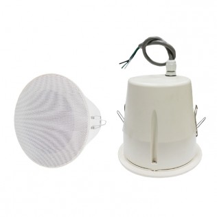 IP55 waterproof slim edge ceiling speaker with built-in 4" speaker driver and 100V transformer, 3/6W power taps.