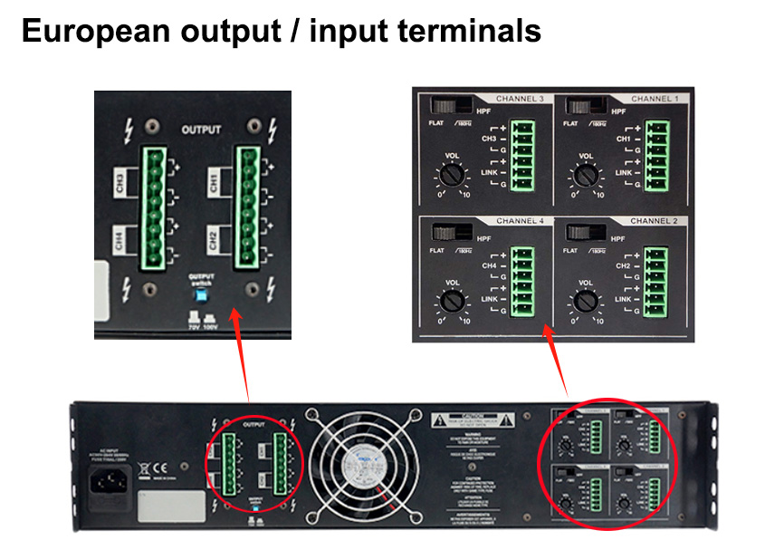 Elevate your audio experience with our lightweight 4 Channel Class D Digital Power Amplifiers, designed for versatility and performance. With a compact body and advanced SMPS switching technology, the amplifiers are perfect for various settings, including KTVs, conference rooms, multi-function halls, and background music applications.