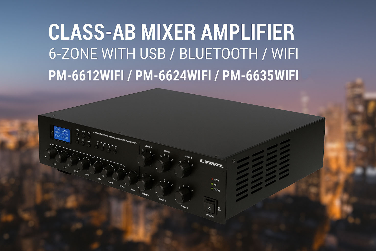 The LYINTL PM-66 Series is a line of high-performance 6-zone WiFi mixing amplifiers, designed for professional public address (PA) systems and commercial audio installations. With built-in WiFi streaming, Bluetooth, USB, and multi-zone output, these amplifiers offer versatile control and crystal-clear sound for background music, announcements, and paging systems.