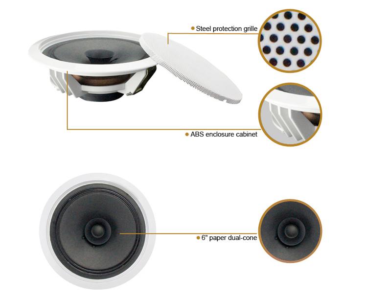 This speaker is an ideal economy choice for industrial and commercial applications in hotels, shops, home, classroom, restaurants, coffee bars and where background music is needed.